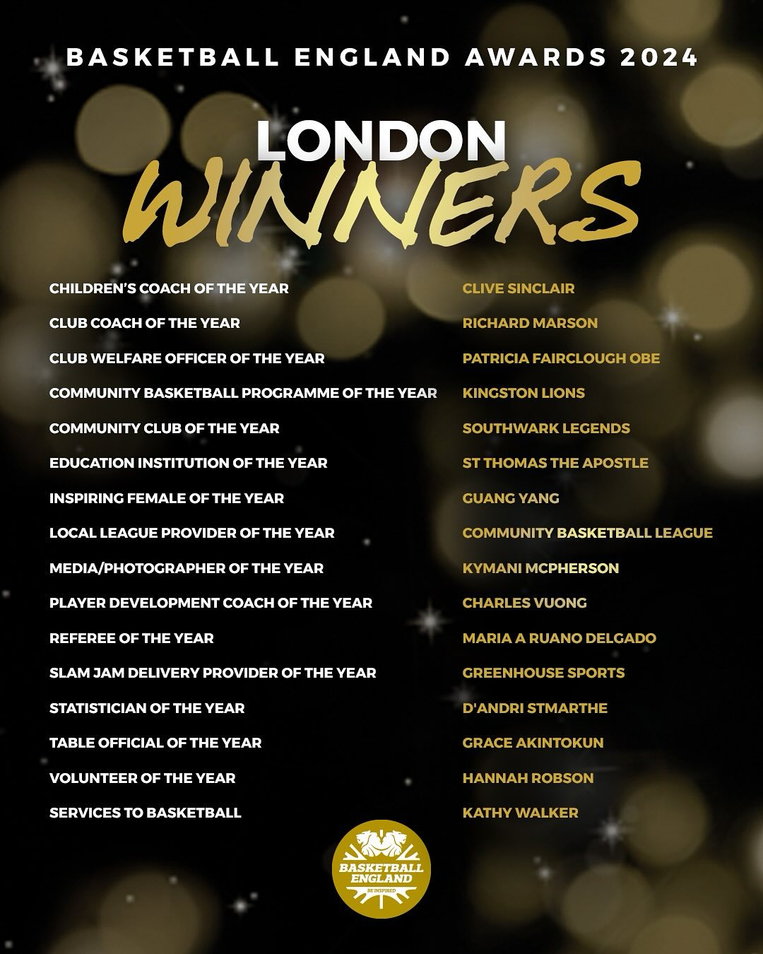 The Basketball England awards programme continued in 2024 and sees nominations gathered from the public across the 10 English regions, with winners selected in partnership with the Regional Management Committee Chairs.