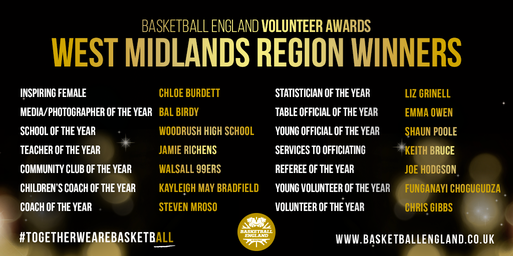 Basketball England is proud to announce the winners of the 2019 West Midlands Region Volunteer Awards.