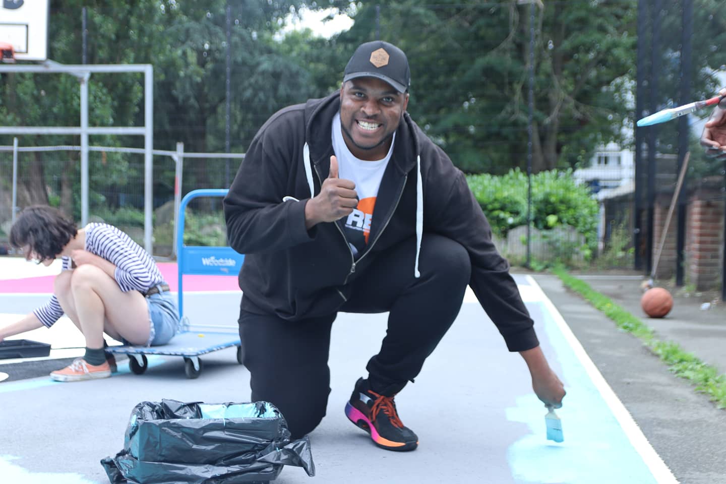 More recently, Lamar partnered up with Gareth Roberts, director for Project in the Paint and Pink Lady Apples, along with artist Coco Lom, to bring some colour to a basketball court in Joseph Grimaldi Park, Islington.