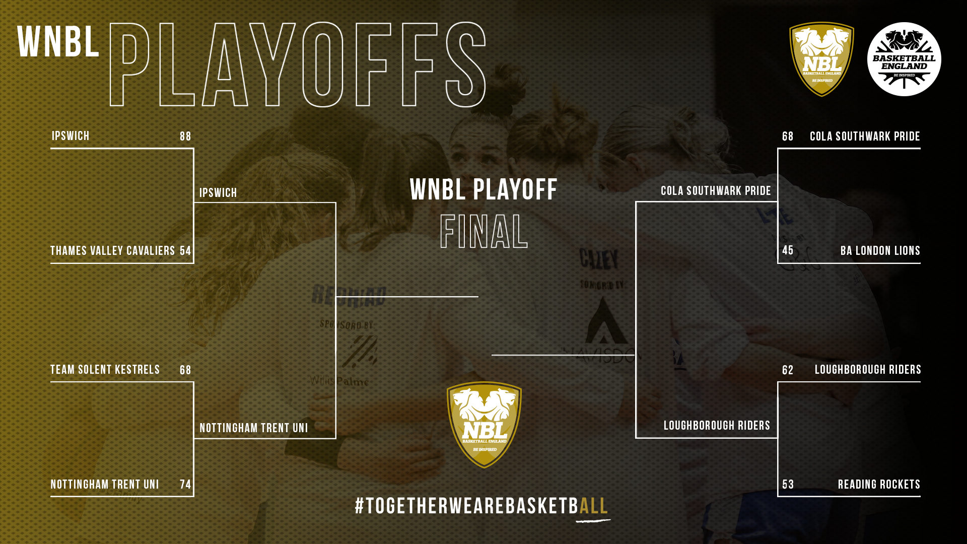 Ipswich, Nottingham, CoLA and Loughborough are all still in with a chance, but tomorrow' semi-finals will halve our pool of teams once more as we head towards this season's showpiece.