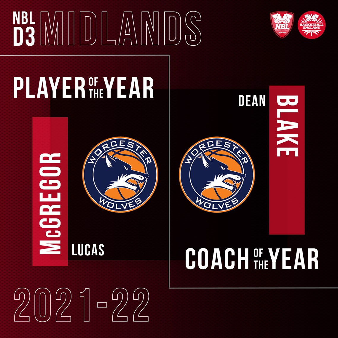 The Wolves made it a 1-2 in the Midlands as well, with McGregor's coach Dean Blake also being recognised as the conference's top play caller.