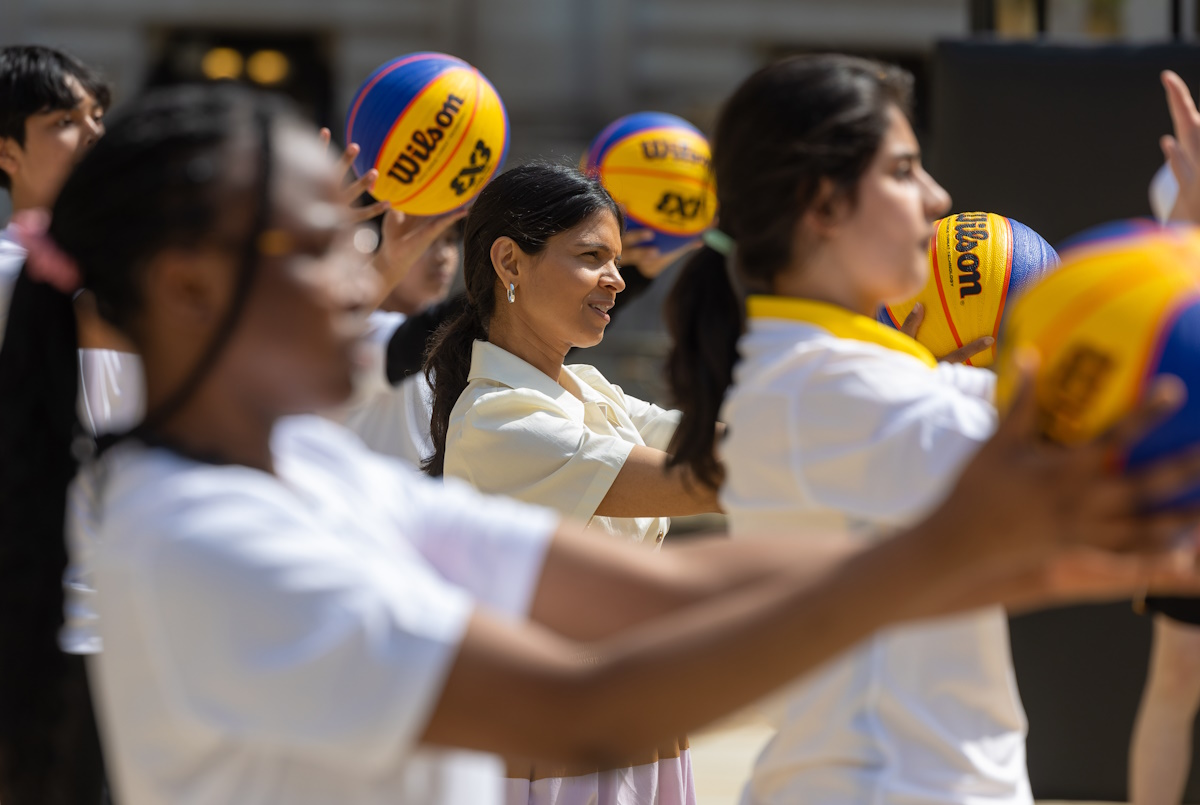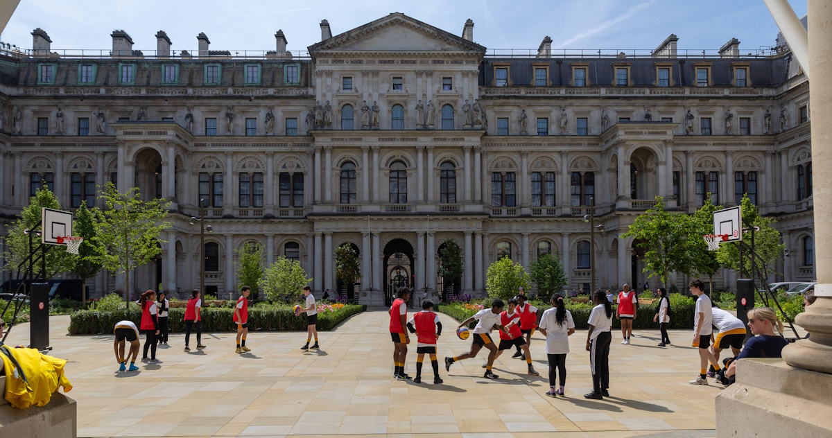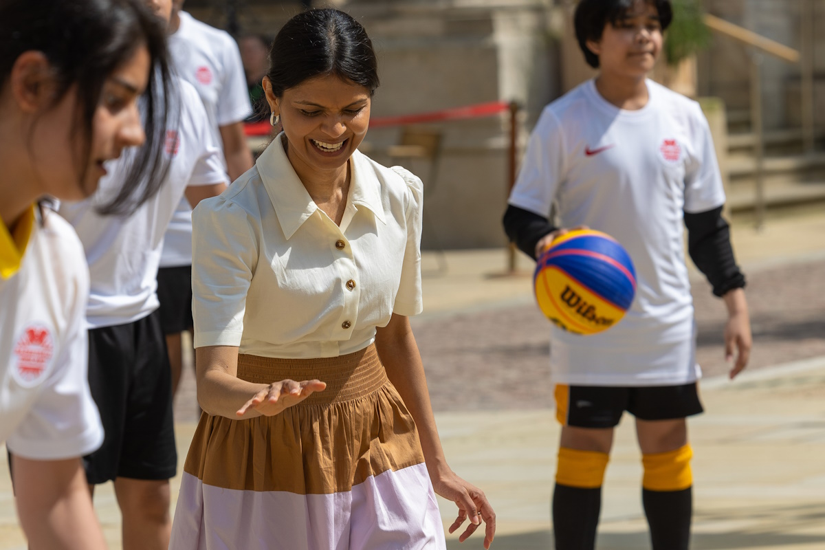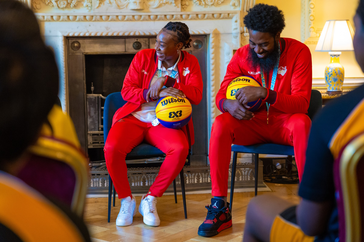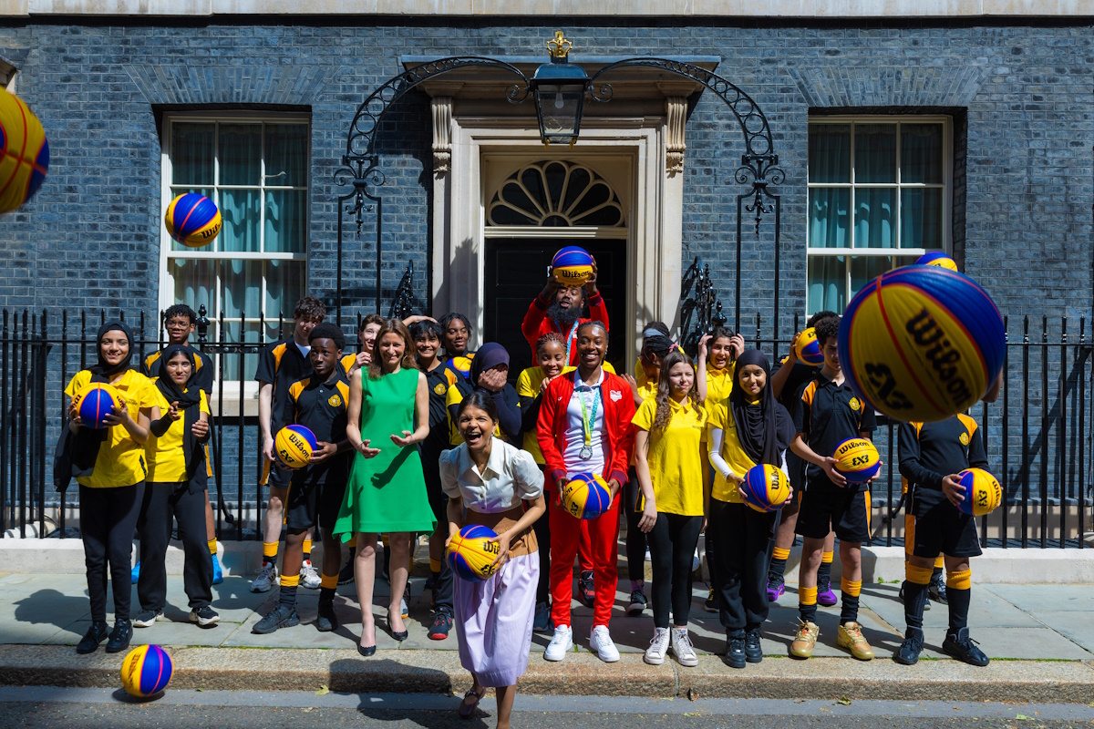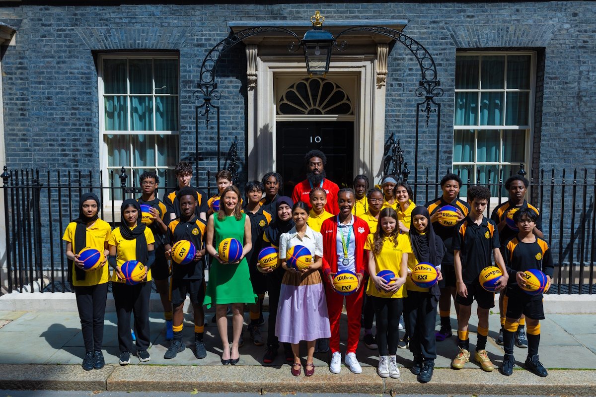 Twenty Year 9 children from Westminster City School in London and Bemrose School in Derby stepped inside the world-renowned address and listened to talks by Jackman and Beckford-Norton, who answered questions from Mrs Murty and the children on their journeys and successes in the game, and further inspired them and the Secretary of State by hosting a 3x3 basketball coaching clinic outside Number 10, with skills, drills and mini games.