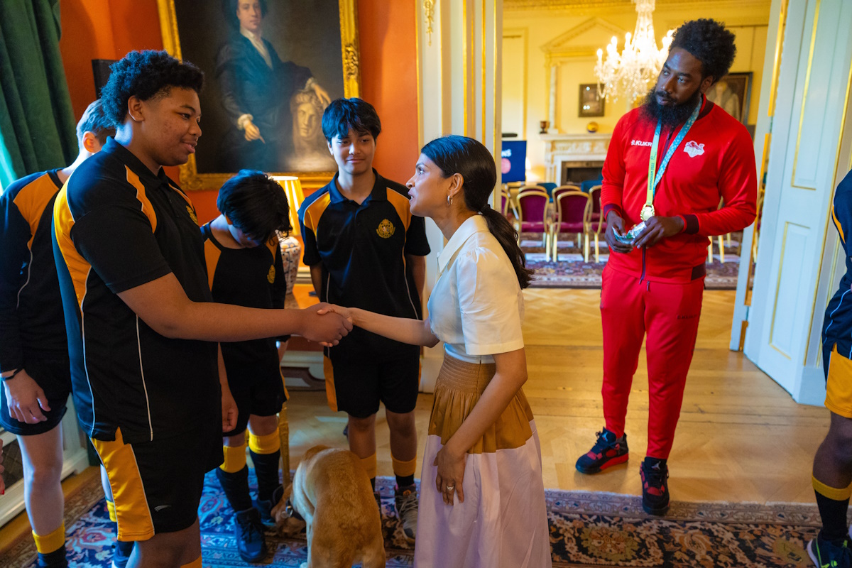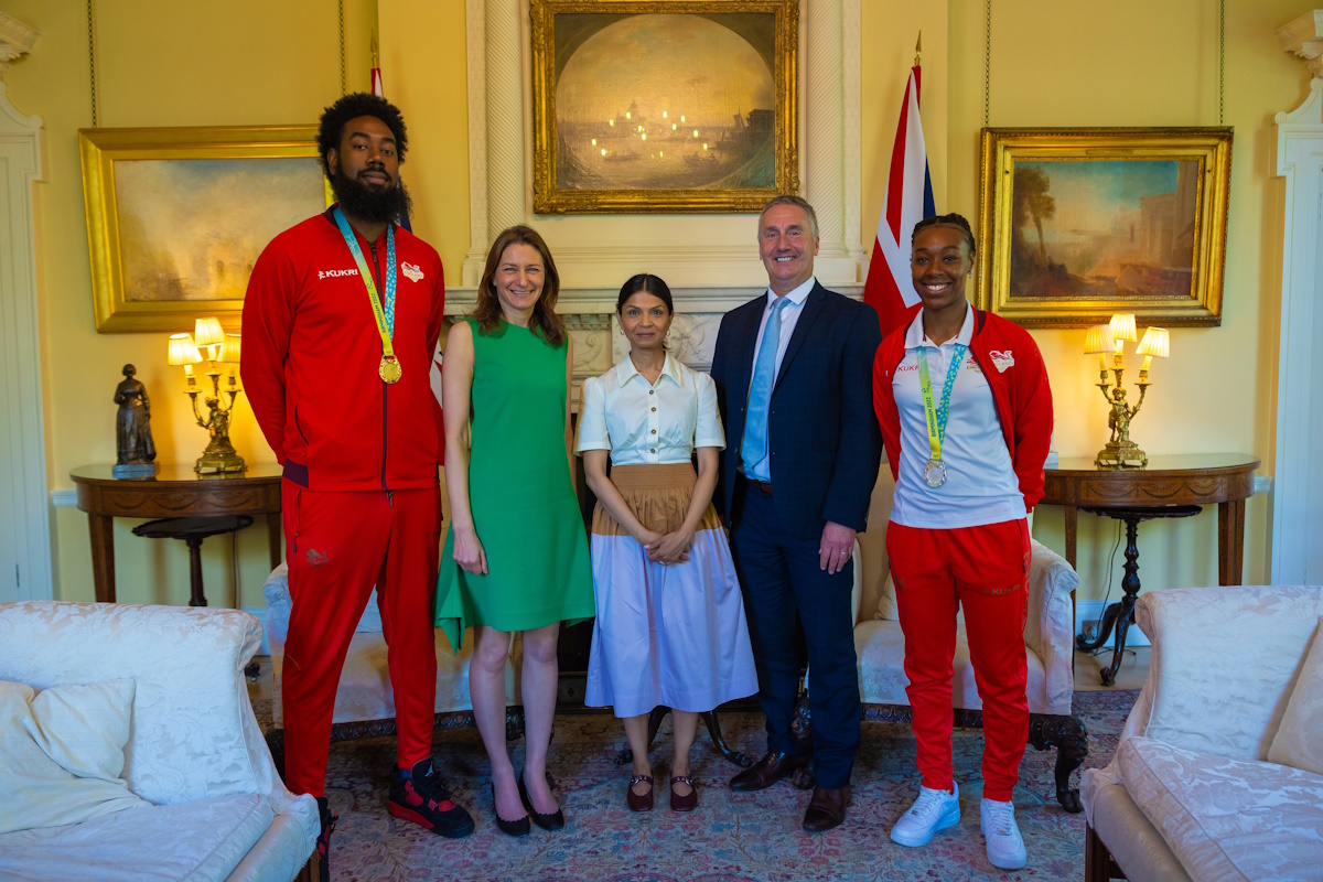 BE CEO Stewart Kellett spoke with the Secretary of State for the Department of Culture, Media and Sport, the Rt Hon Lucy Frazer KC MP, at 10 Downing Street today (10 May) at an event hosted the Prime Minister’s Wife, Akshata Murty, where BE athletes Orlan Jackman and Shanice Beckford-Norton shared how their lives have been shaped by basketball.