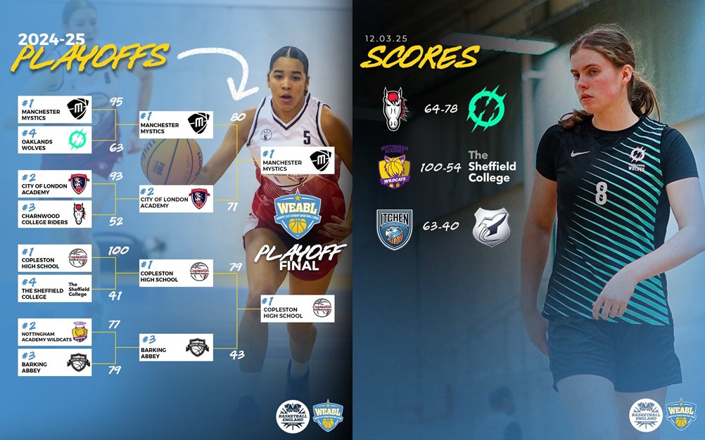 Myerscough and Barking will go head-to-head in the EABL as a repeat of the 2022/23 showpiece, whilst Manchester Mystics are into their first ever WEABL Final against Copleston High School.
